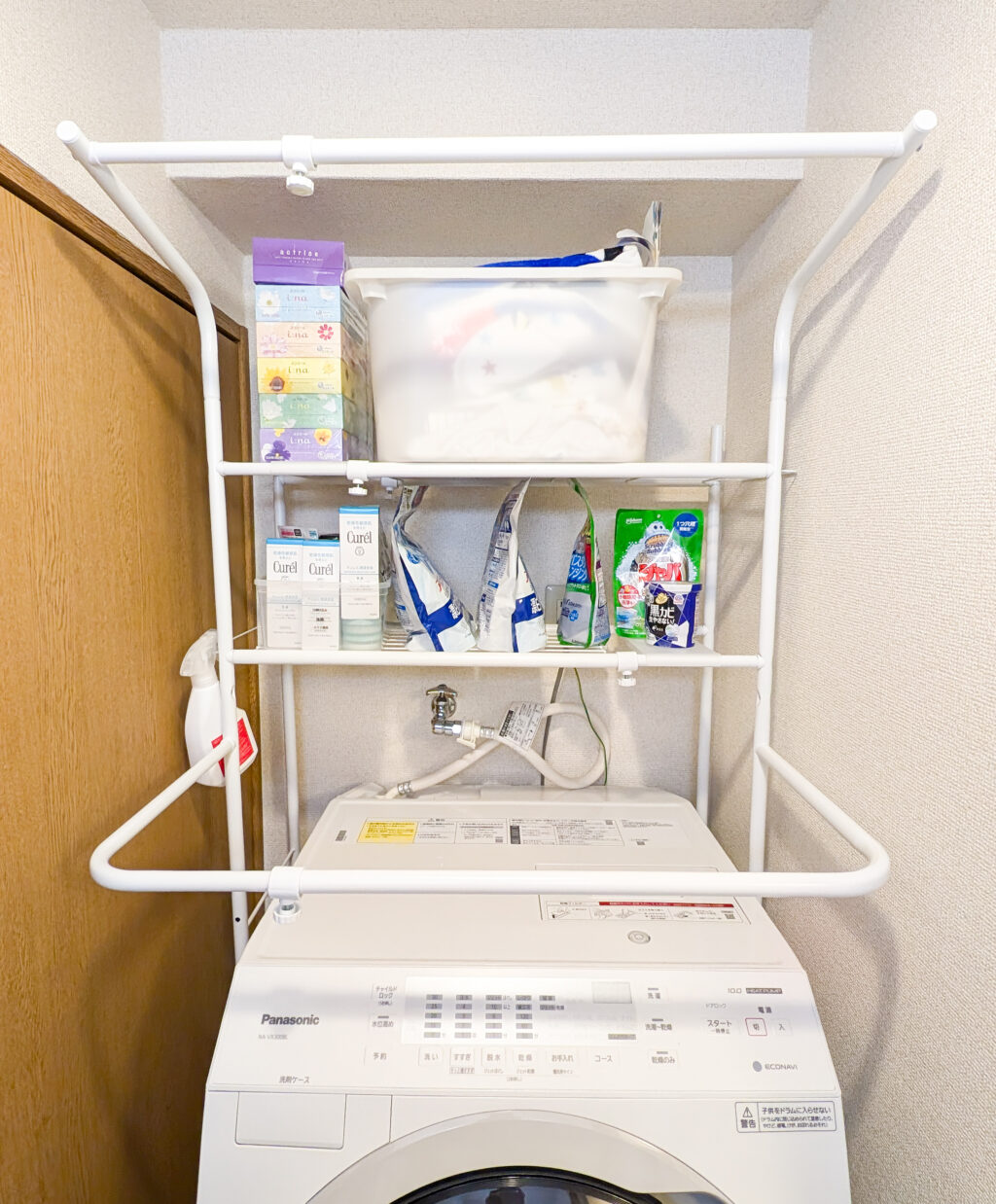 洗濯機上の収納用に、ランドリーラックなるものを楽天で買いました。