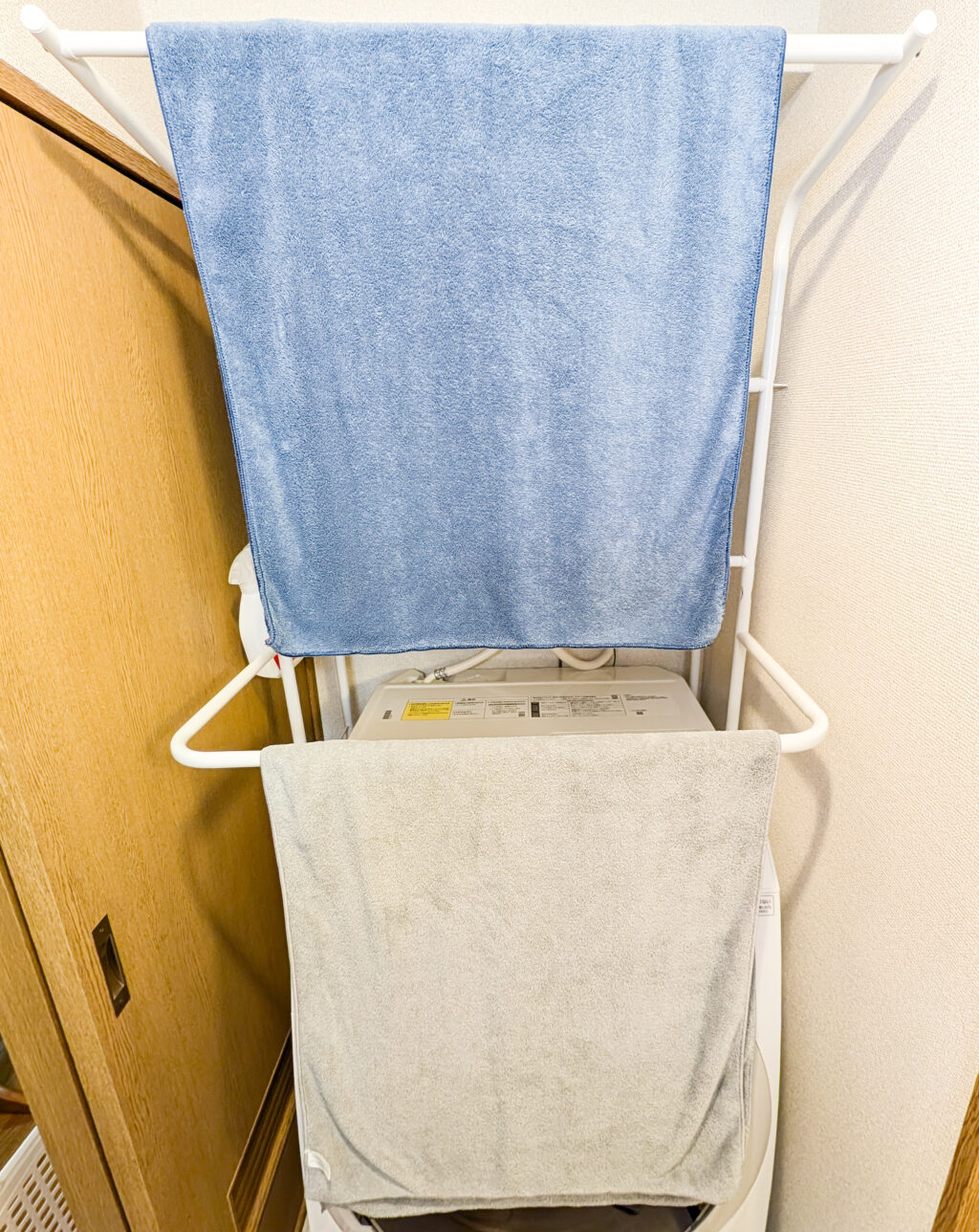 大きめのバスタオルかけが2本ついてるので目隠しみたいにもなり、便利です◎