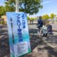 公園内の西側の「石のステージ」にある受付へ行くと、A3サイズの専用画用紙をもらえました。絵の具やクレヨン、画板などの道具は自分で持っていく必要があります。